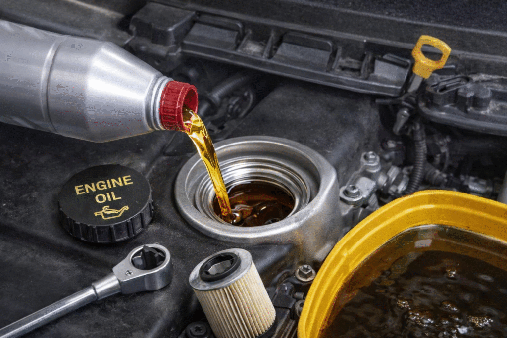 Substituição do óleo do motor para manter a lubrificação ideal, reduzir o desgaste interno, melhorar o desempenho e prolongar a vida útil do motor.